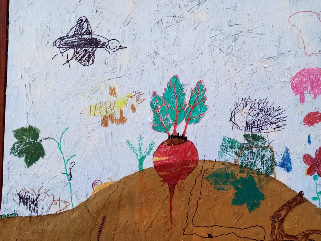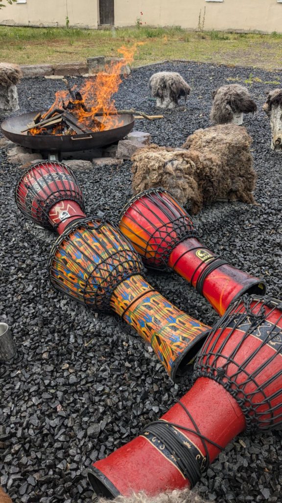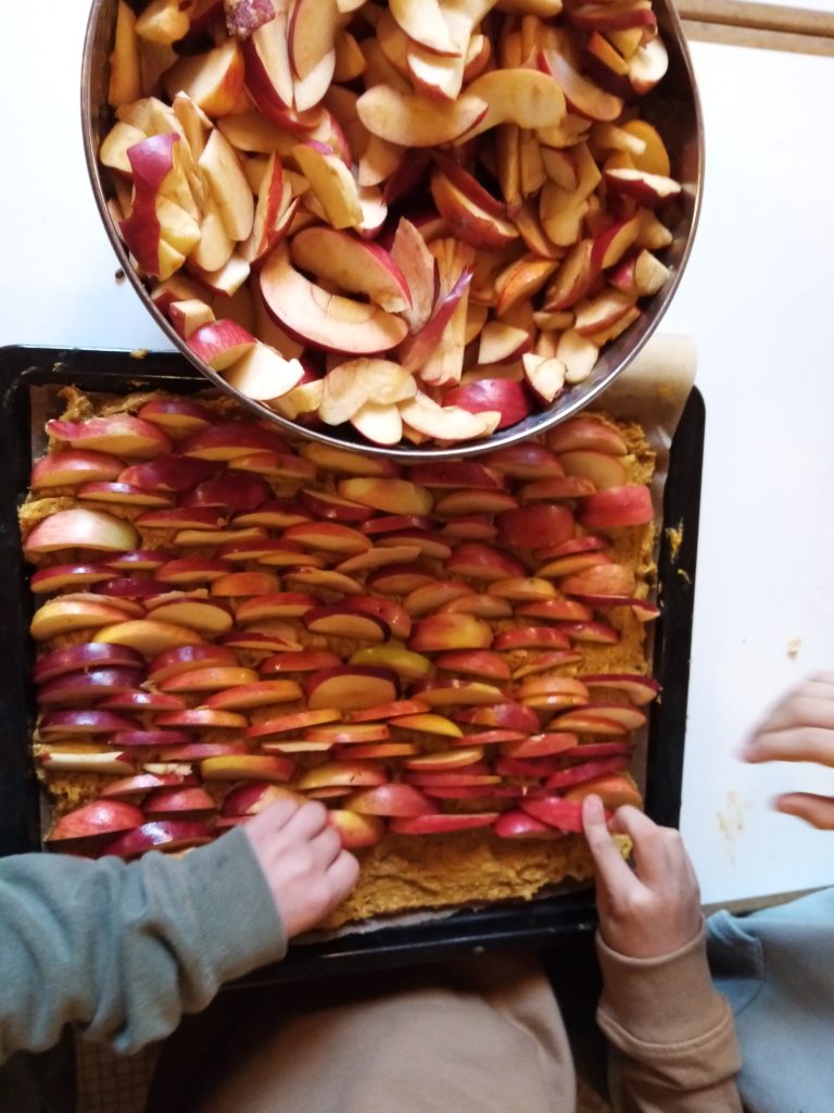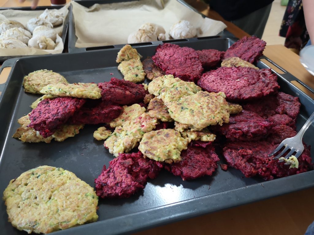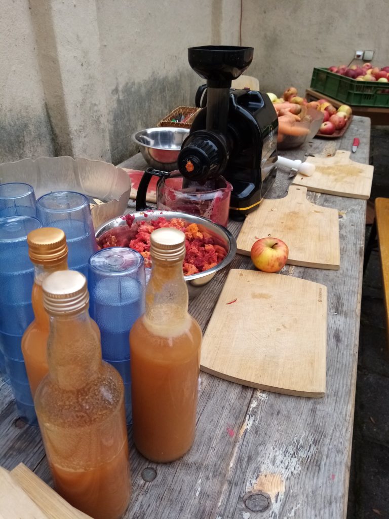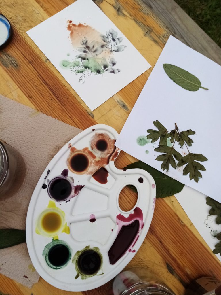 Es wurde Saft gepresst, Kräutertee bereitet, Blätter gedruckt, am Feuer musiziert und Knüppelkuchen gebacken, es gab frisches Gemüse aus dem eigenen Garten, Suppe und selbstgebackenen Obstkuchen.