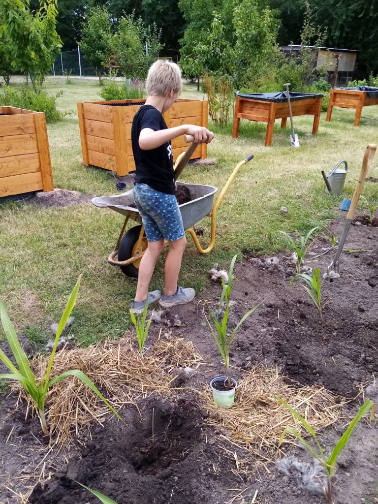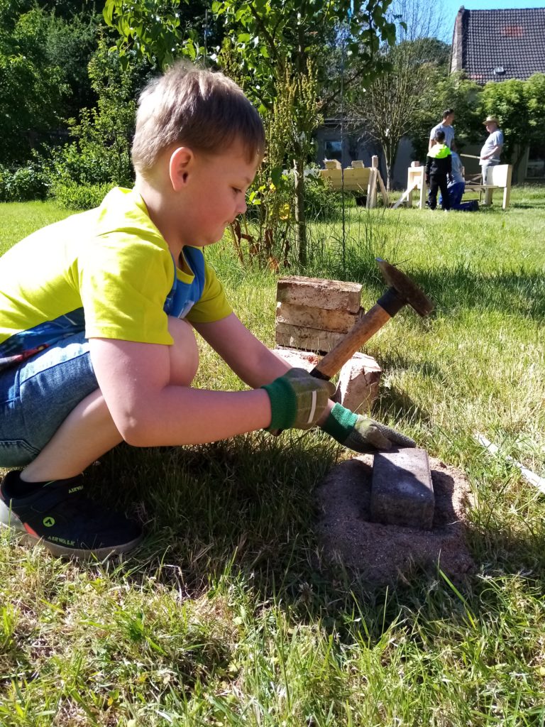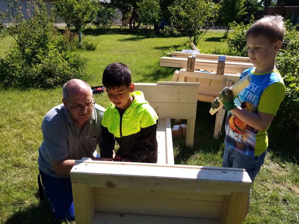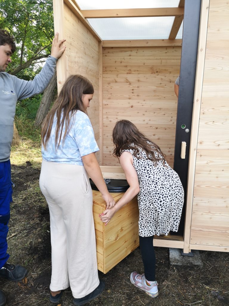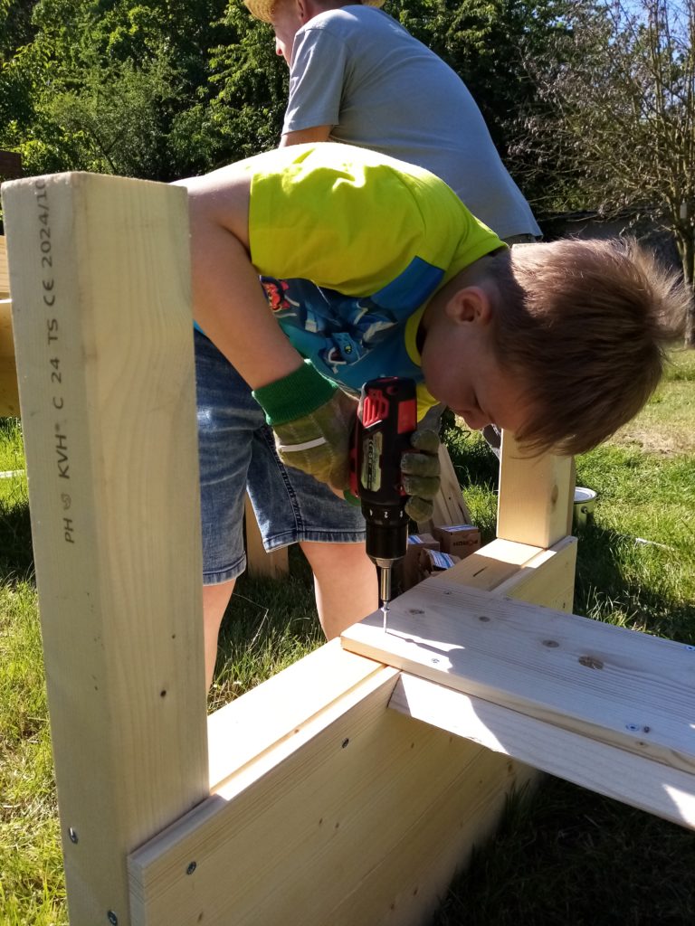Sie haben zusammen mit den Kindern Hochbeete und einen Holzunterstand gebaut, eine Komposttoilette aufgestellt und viele Bildungstafeln und Geräte repariert und wetterfest gemacht