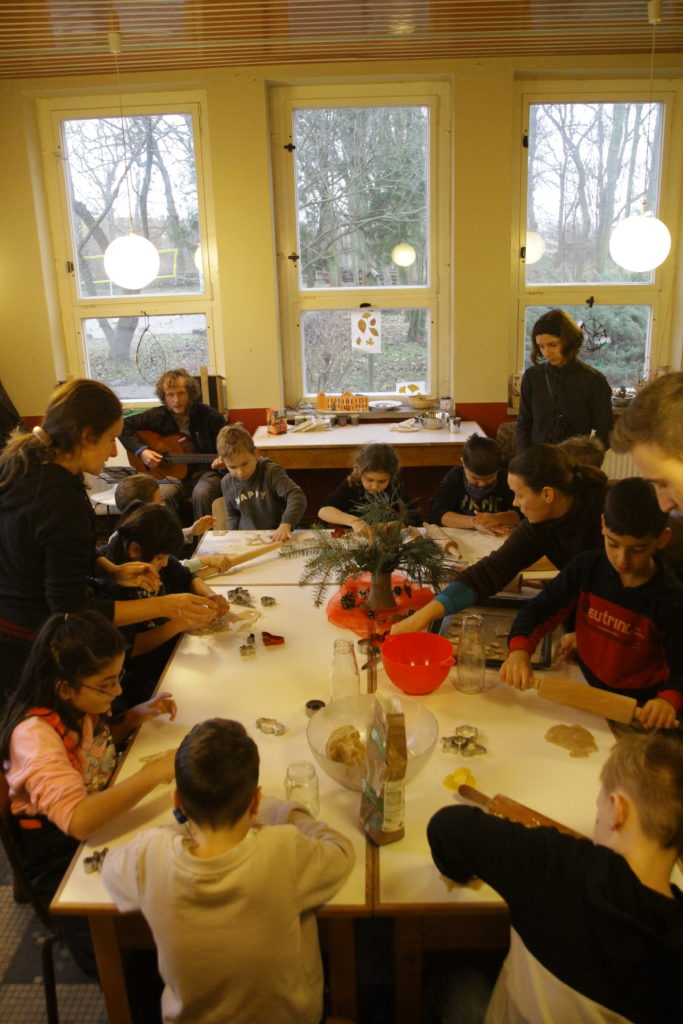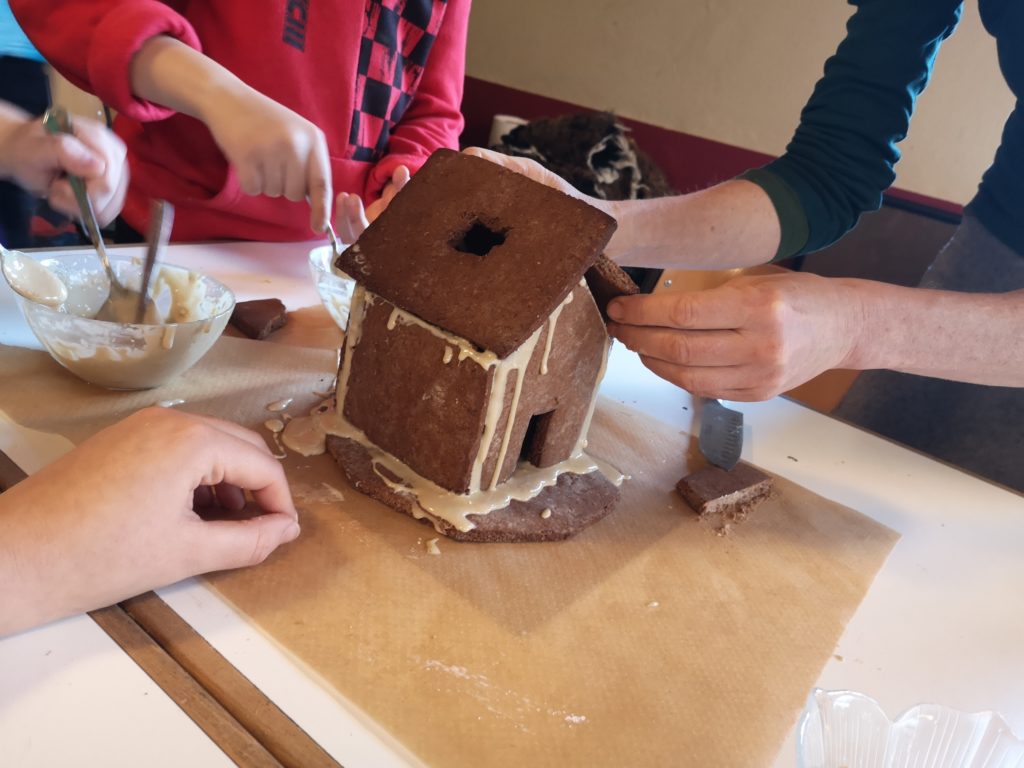 Gemeinsam haben die Kinder Plätzchen zum Verschenken und selbst Naschen gebacken und verziert. Auch ein Lebkuchenhaus wurde gebaut.