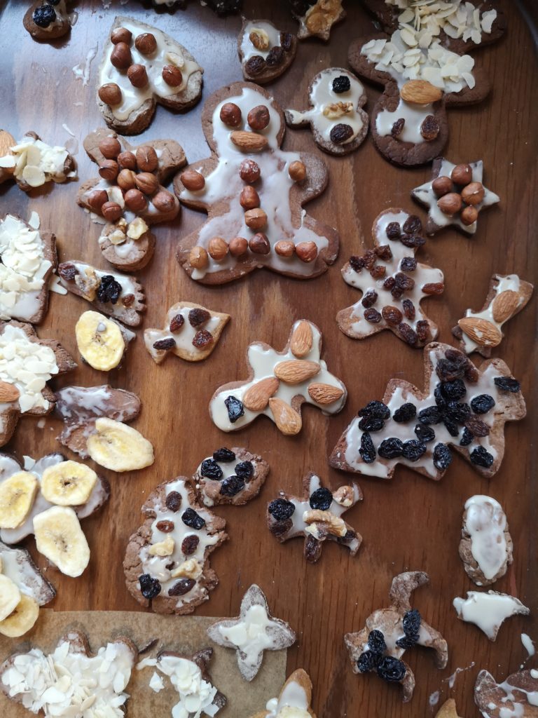 Drinnen wurde fleißig gebacken und allerlei Naschwerk ist entstanden. Wir haben die verschiedenen Nüsse und Gewürze der Weihnachtszeit entdeckt.