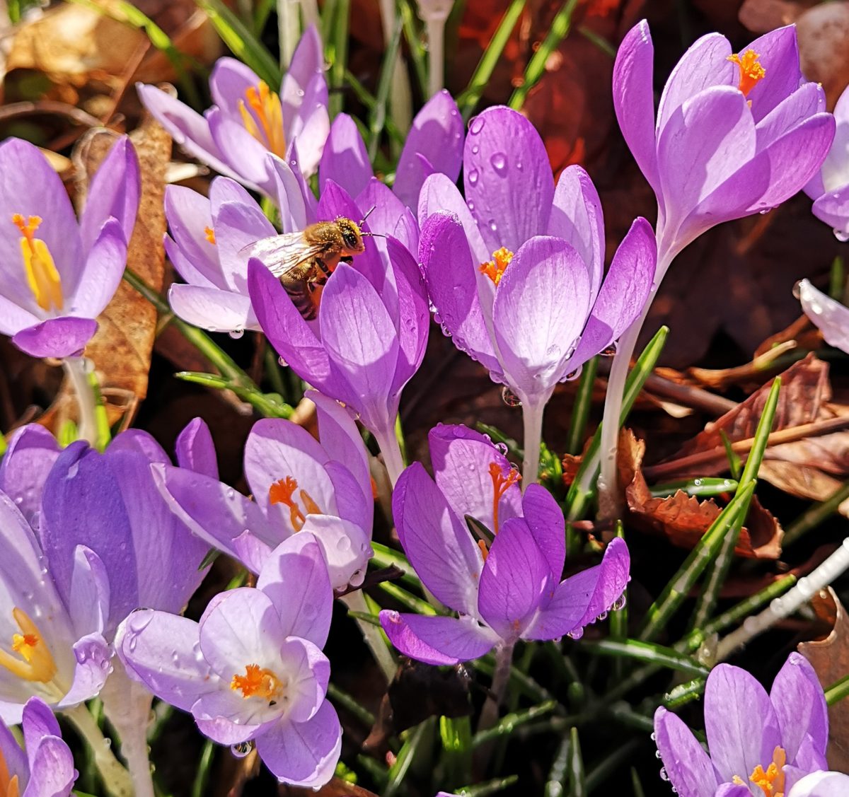 Die warmen Sonnenstrahlen locken auch die Bienen wieder nach draußen zum Nektar und Pollen sammeln.